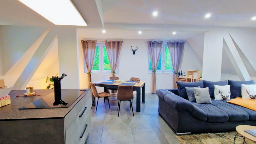 Ferienwohnung Kiefer – Schwarzwald mit Style: 100 m², zwei Schlafzimmer, moderne Ausstattung & gemütlicher Look. Perfekt für Paare, kleine Familien oder Freunde. Starte direkt vor der Haustür zu Wanderungen oder Radtouren, auf Wunsch mit E-Bike-Verleih. Kleine Extras wie Willkommenswein oder ein Schnäpsle machen deinen Aufenthalt echt, lokal & alles außer 08/15.